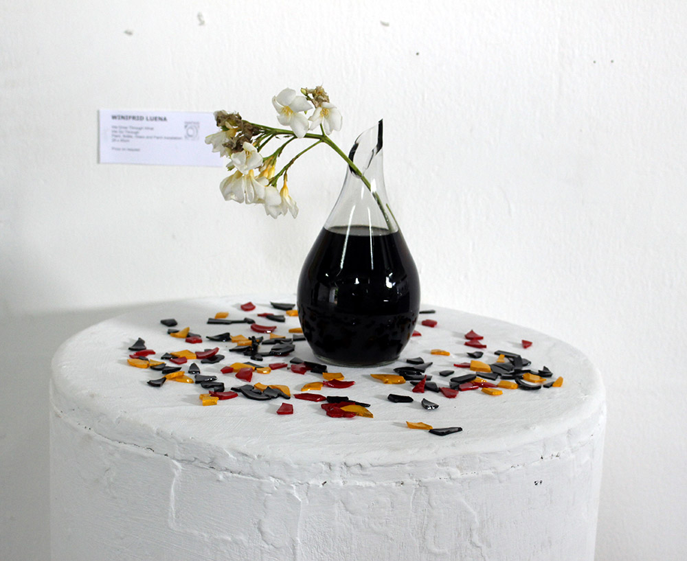 Winifrid Luena We Grow Through What We Go Through Plant Bottle Glass and Paint Installation 28cm x 45cm